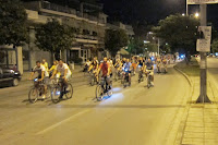 Η καθιερωμένη Νυχτερινή Ποδηλατοβόλτα γι' αυτή την Πέμπτη είχε αφετηρία το λιμανάκι, που βρίσκεται στην κοίτη του Πηνειού, απο τη μεριά του κέντρου της πόλης. Η συμμετοχή ήταν ιδιαίτερα μεγάλη, και η διαδρομή που ακολουθήσαμε περιλάμβανε κυρίως κεντρικούς και φαρδύς δρόμους. Όπως είναι γνωστό το θέμα